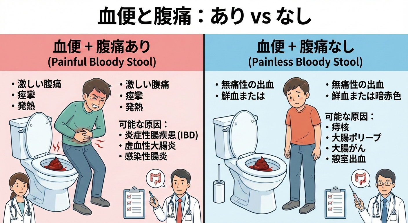 本記事では、これら二つの血便の違いを、原因・特徴・頻度・治療法を消化器内科医の観点から解説したいと思います。